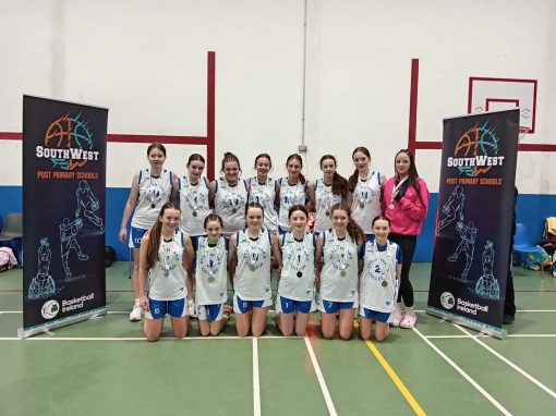 Just minutes after the 2nd years finished up, the 1st years were back on the court for their final. Pobalscoil Inbhear Scéine were again the opposing team. The Kerry school took the lead early as we were finding their feet in the game. After two quarters, our girls were seven points down but never lost faith in their abilities as they fought back in the 3rd and start of the 4th to make it a 1 point game. But a timeout and change of tactic by Kenmare stifled our offense and they took hold of the game again. The girls battled hard but couldn’t muster a second comeback and eventually succumbed to an 8 point defeat.