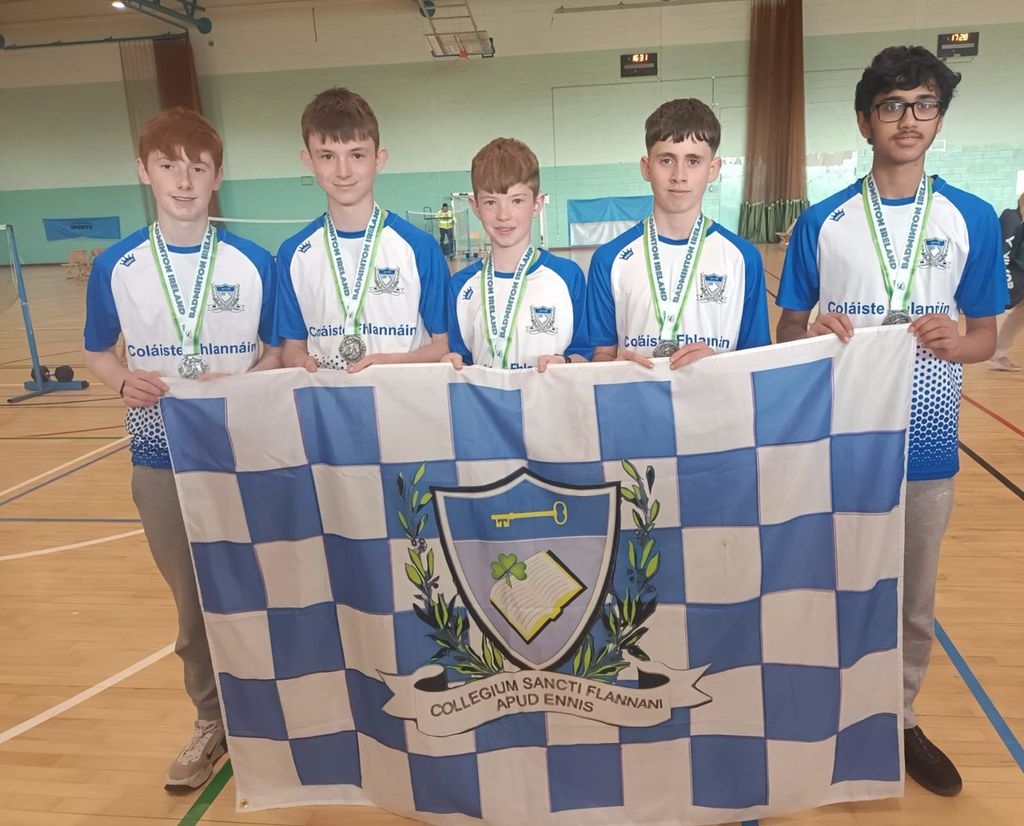 Congratulations to our U16 Boys who won silver medals in today’s All Ireland Badminton final. The boys were representing St.Flannan’s College and Munster.They had strong wins over the two schools representing Ulster and Leinster and narrowly missed out to the school representing Connaught. The standard of badminton was very high and the boys showed an excellent display of sportsmanship.